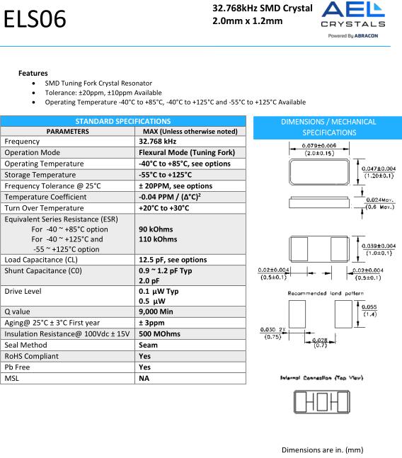 艾爾晶振,ELS06晶振,ELS06-32.768kHz-9-H-1-T晶振