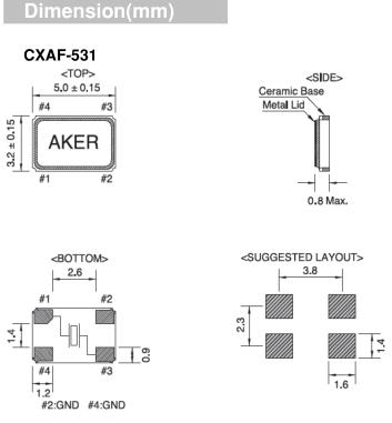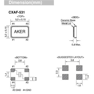 AKER晶振,CXAF-531晶振,相機專用晶振,智能手機晶振,產品具有高精度超小型的表面貼片型石英晶體振蕩器,最適用于移動通信終端的基準時鐘等移動通信領域.比如智能手機,無線通信,衛星導航,平臺基站等較高端的數碼產品,晶振本身小型,薄型具備各類移動通信的基準時鐘源用頻率,貼片晶振具有優良的電氣特性,耐環境性能適用于移動通信領域,滿足無鉛焊接的高溫回流溫度曲線要求.Aker成立于1990年,是一家全球性高科技公司,設計和制造各種頻率控制解決方案。以技術為導向的總部設在臺灣,我們通過全球分支機構和分銷網絡提供即時服務,以滿足客戶的滿意度。關注客戶的需求,Aker了解市場需求,為客戶提供全面的技術支持 - Total Solution。