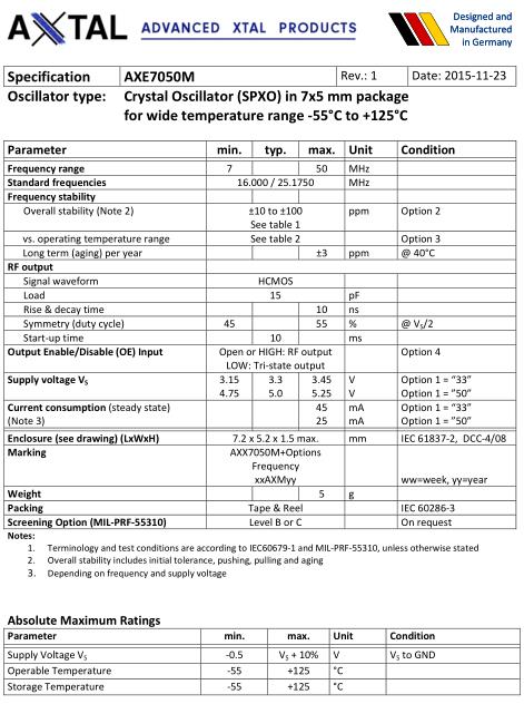 AXTAL晶振,AXE7050M晶振,AXE7050M-50-25-2C_Rev.1-10.000MHz晶振