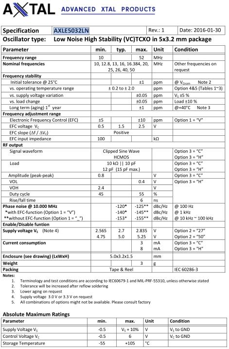 AXTAL晶振,AXLE5032LN晶振,AXLE5032LN-V-50-C‐05-4F_Rev.1-10.000MHz晶振