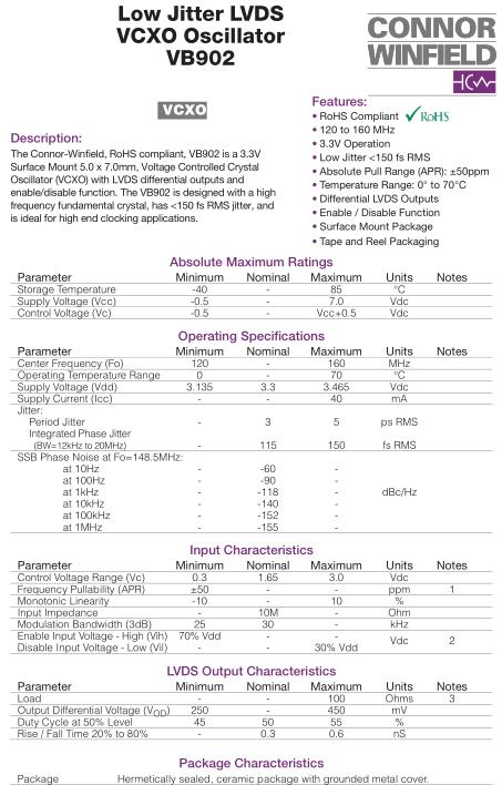 康納溫菲爾德晶振,VB902晶振,VB902-120.0M晶振