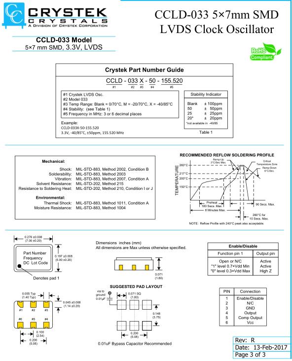 Crystek晶振,CCLD-033晶振,CCLD‐033X‐50‐155.520晶振