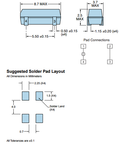 | 頻率溫度特征 | f_tem | ±30 × 10-6/-20°C ~ +70°C | 超出標準的規(guī)格請聯(lián)系我們. |