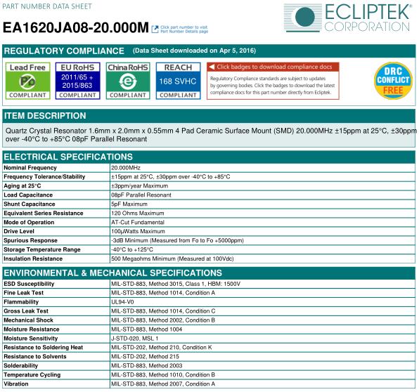 Ecliptek晶振,EA1620JA08-20.000M晶振,無(wú)源晶振