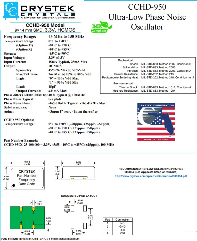 | CCHD-950X-50-100.000 | Crystek晶振 | CCHD-950 | XO (Standard) | 100MHz | ±50ppm |