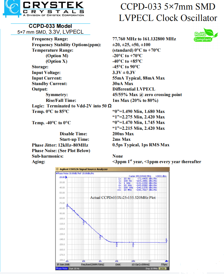 LVPECL時(shí)鐘振蕩器CCPD-033M-50-156.250用于數(shù)字視頻信號(hào),CCPD-033相關(guān)編碼: