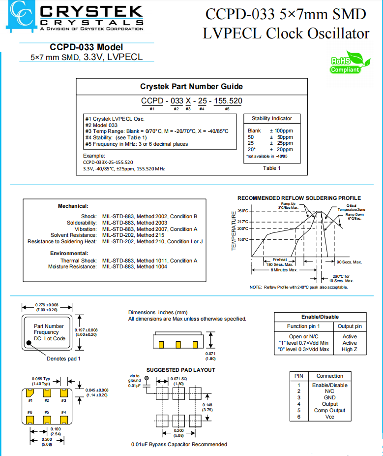 | CCPD-033X-50-155.520 | Crystek晶振 | CCPD-033 | XO (Standard) | 155.52MHz | ±50ppm |