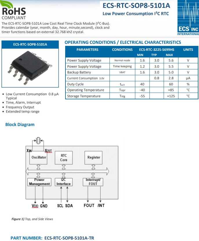 更多>>ECS-RTC-SOP8-5101A非常適合電池供電的便攜式遠程電子設備