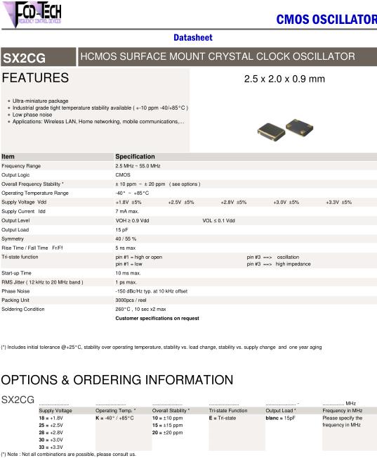 FCD-Tech晶振,SX2CG晶振,SX2CG-30K15E15pF-26.000MHz晶振,有源晶振,是指晶體本身起振需要外部電壓供應(yīng),起振后可直接驅(qū)動CMOS集成電路,產(chǎn)品本身已實現(xiàn)與薄型IC(TSSOP封裝,TVSOP封裝)同樣的1mm厚度,斷開時的消費電流是15µA以下,編帶包裝方式可對應(yīng)自動搭載及IR回流焊接(無鉛對應(yīng))產(chǎn)品有幾種電壓供選1.8V,2.5V,3V3.3V,5V,以應(yīng)對不同IC產(chǎn)品需要.