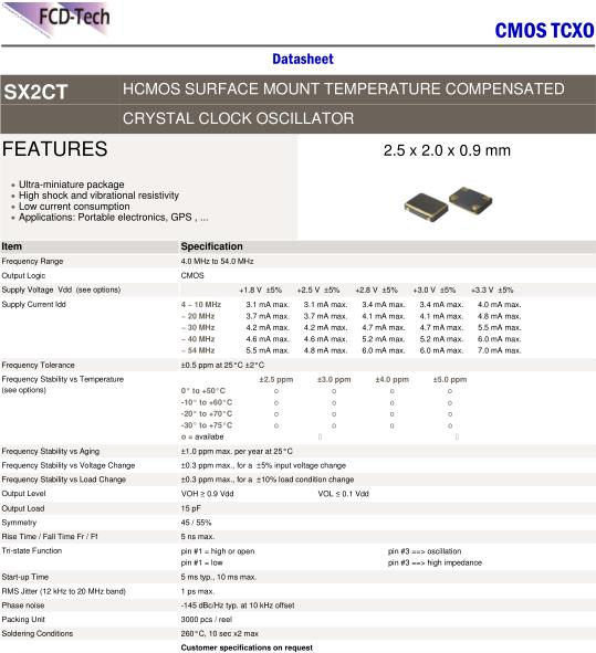 FCD-Tech晶振,SX2CT晶振,SX2CT-28F2.5E14P-20.000MHz晶振