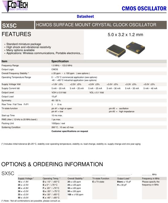 FCD-Tech晶振,SX5C晶振,SX5C-28F20EH-8.000MHz晶振,5032mm體積的石英晶體振蕩器,有源晶振,該產品可驅動2.5V的溫補晶振,壓控晶振,VC-TCXO晶體振蕩器產品,電源電壓的低電耗型,編帶包裝方式,可對應自動高速貼片機自動焊接,及IR回流焊接(無鉛對應),為無鉛產品,超小型,質地輕.產品被廣泛應用到集成電路,程控交換系統,無線發射基站.