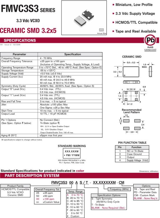 FMI晶振,FMVC3S3晶振,FMVC3S300AS/-24.000M-CM晶振,壓控晶振(VCXO),壓控石英晶體振蕩器基本解決方案,PECL輸出,輸出頻率60MHz到200MHz之間,出色的低相位噪聲和抖動(dòng),三態(tài)功能,應(yīng)用:SDH/SONET,以太網(wǎng),基站,筆記本晶振應(yīng)用,符合RoHS/無鉛.FMI晶振作為標(biāo)準(zhǔn)通信公司的專屬供應(yīng)商,我們成立于1971年,30多年來,我們一直為通信市場(chǎng)提供快速交付和嚴(yán)格公差,石英晶體和晶體振蕩器.1992年,頻率管理已擴(kuò)展到OEM市場(chǎng). FMI,頻率管理國際,成立的目的是為各種行業(yè)的各種電子系統(tǒng)應(yīng)用提供頻率和時(shí)序控制的工程解決方案.FMI是一家真正以解決方案為導(dǎo)向的美國制造商.我們目前為各種細(xì)分市場(chǎng)提供產(chǎn)品,包括:極端環(huán)境,能源勘探,石油和天然氣勘探(各種定向鉆井工具),石油和天然氣生產(chǎn)工具,地?zé)?,熱監(jiān)測(cè)工具,空間,科學(xué)(低地球軌道),科學(xué)(深空),廣告,軍事和航空航天,航空電子學(xué),導(dǎo)航,控制系統(tǒng),商業(yè)和工業(yè),電信(有線或無線),無線(包括實(shí)用計(jì)量和大容量微型調(diào)制解調(diào)器,如XBee),工業(yè)控制(包括計(jì)量),汽車(發(fā)動(dòng)機(jī)傳感器等),電腦周邊設(shè)備,LAN/WAN,光網(wǎng)絡(luò).