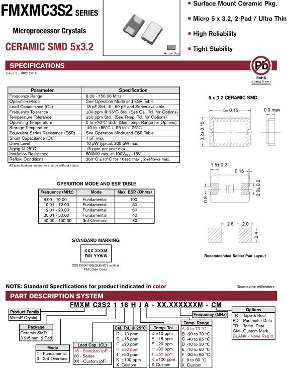 FMI晶振,FMXMC3S2晶振,FMXM2C3S2118HJA-10.000M-CM晶振