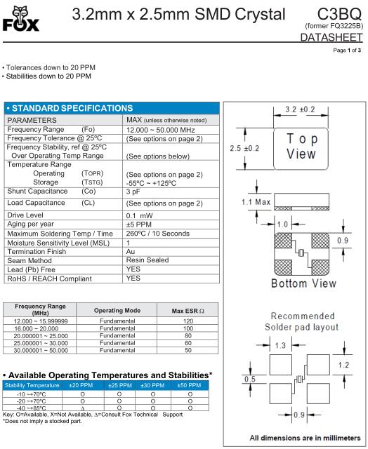 FOX晶振,C3BQ晶振,FC3BQBBME25.0晶振