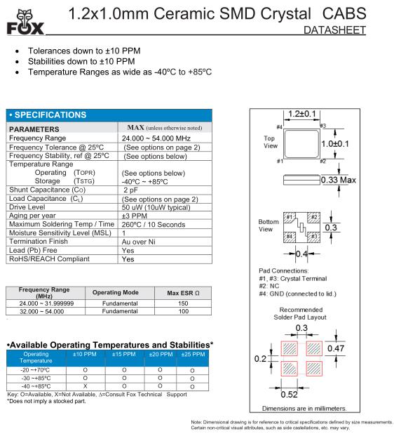 | FOX晶振規(guī)格 | 單位 | CABS晶振頻率范圍 | 石英晶振基本條件 |