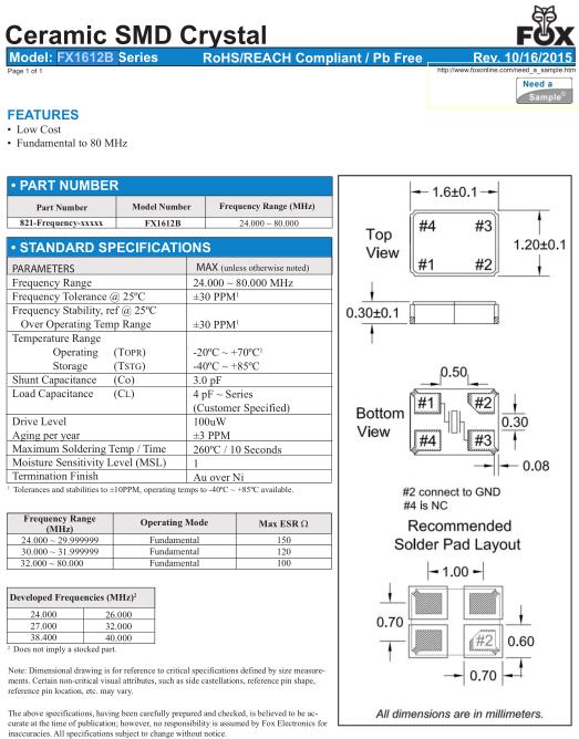 FOX晶振,FX1612B晶振,1612mm晶振