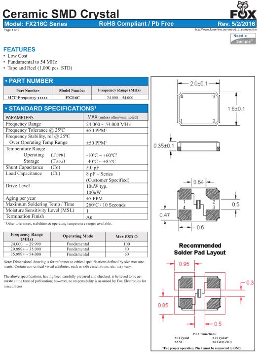 FOX晶振,FX216C晶振,SMD晶振