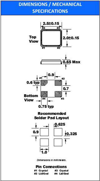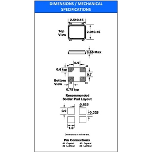 FOX福克斯晶振FX252B,FX252BS-20.000石英貼片晶振 尺寸圖