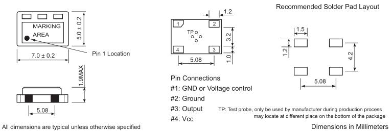 | Control Voltage (Vc) | 2.5±2.0 VDC for Vcc = 5 VDC; 1.65±1.5 VDC for Vcc = 3.3 VDC |