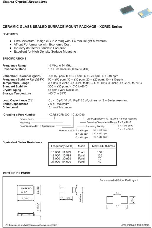 Fortiming晶振,XCR53晶振,XCR53-27M000-1C20D10晶振