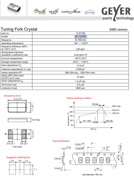 | GEYER晶振規格 | 單位 | KX-327RF晶振頻率范圍 | 石英晶振基本條件 |