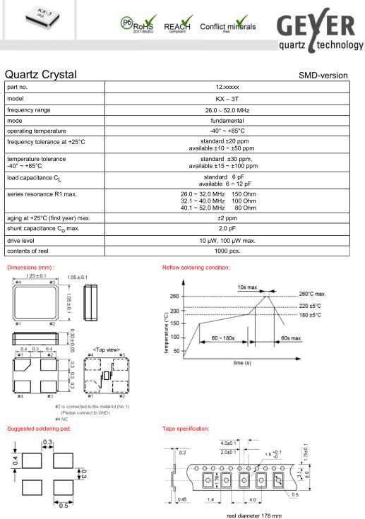 | GEYER晶振規格 | 單位 | KX–3T晶振頻率范圍 | 石英晶振基本條件 | |