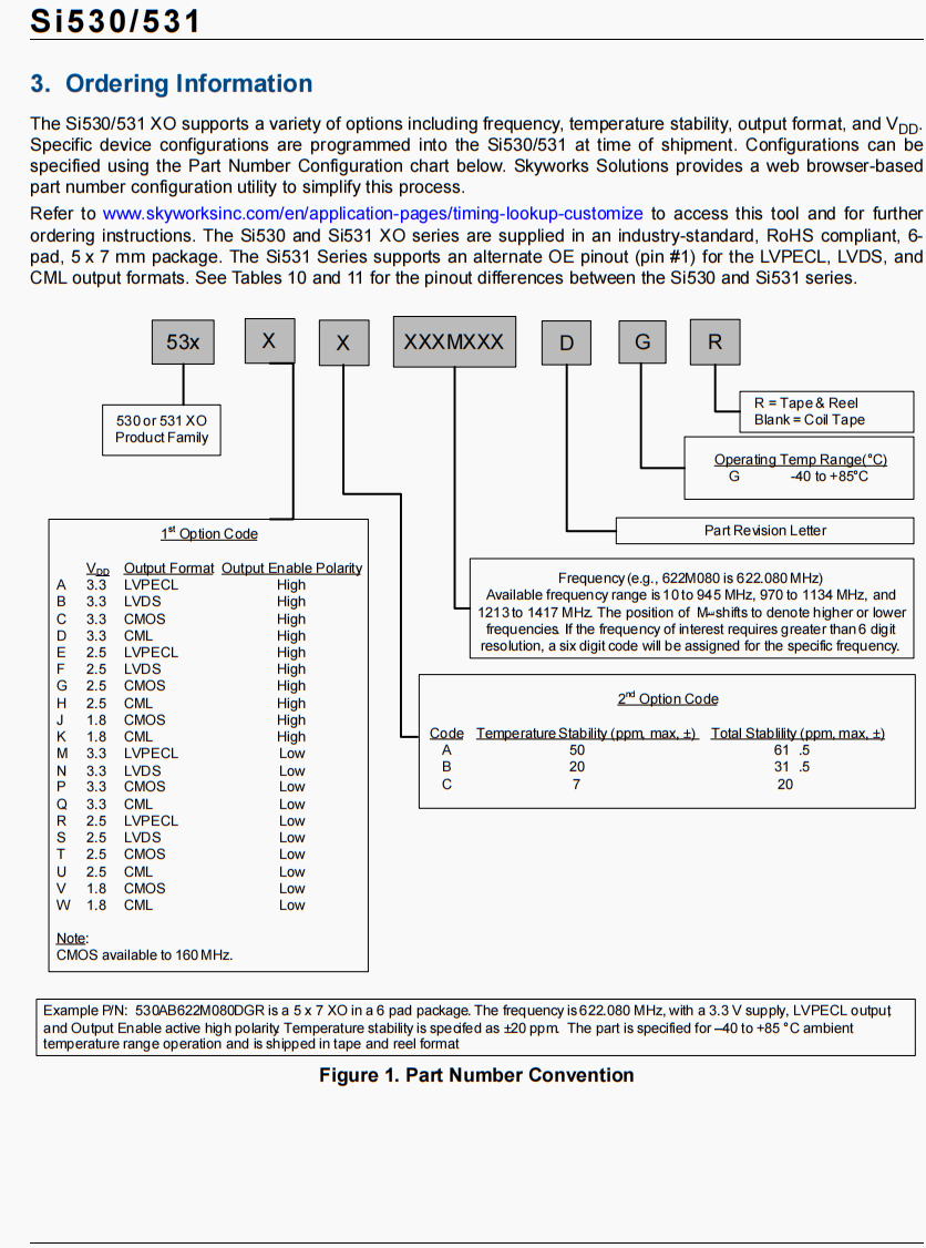 | 530AA127M000DG | Skyworks晶振 | Si530 | 127 MHz | LVPECL | 3.3V | ±50ppm |