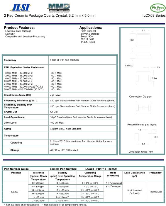 | ILSI晶振規格 | 單位 | ILCX03晶振頻率范圍 | 石英晶振基本條件 | |