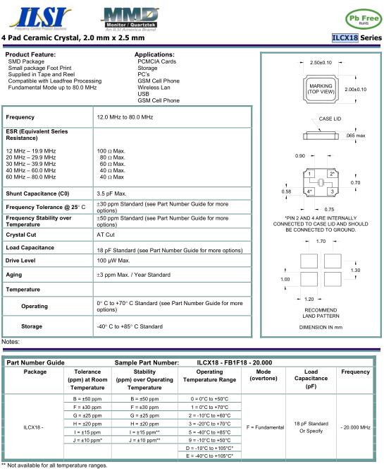 ILSI晶振,ILCX18晶振,ILCX18-FB1F18-20.000晶振