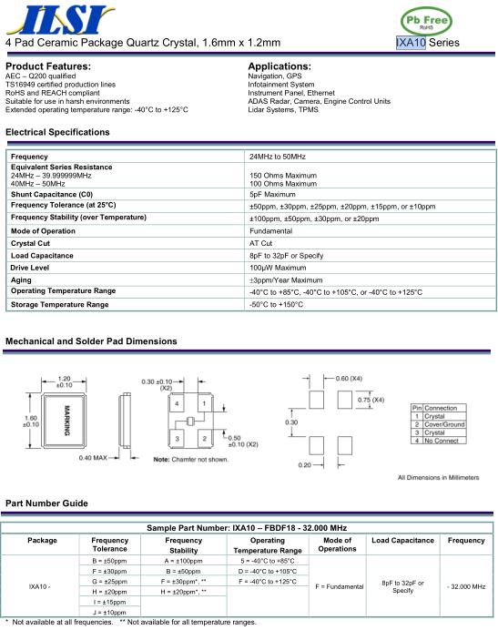 ILSI晶振,IXA10_A晶振,IXA10–FBDF18-32.000MHz晶振