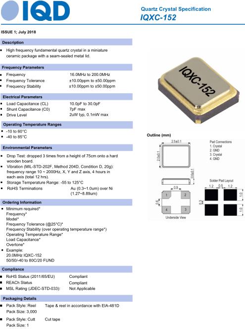 IQD晶振,IQXC-152晶振,20.0MHz-IQXC-152-50/50晶振