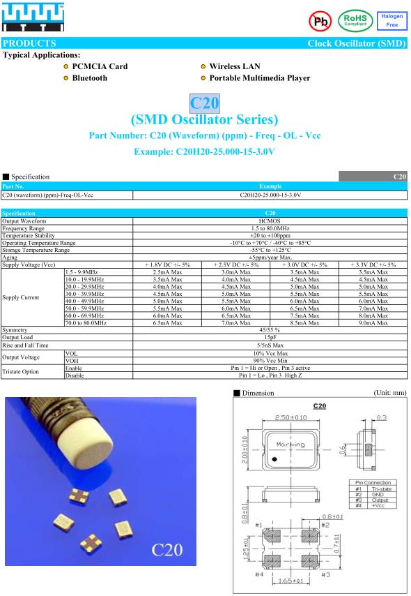 ITTI晶振,C20晶振,C20H20-25.000-15-3.0V晶振