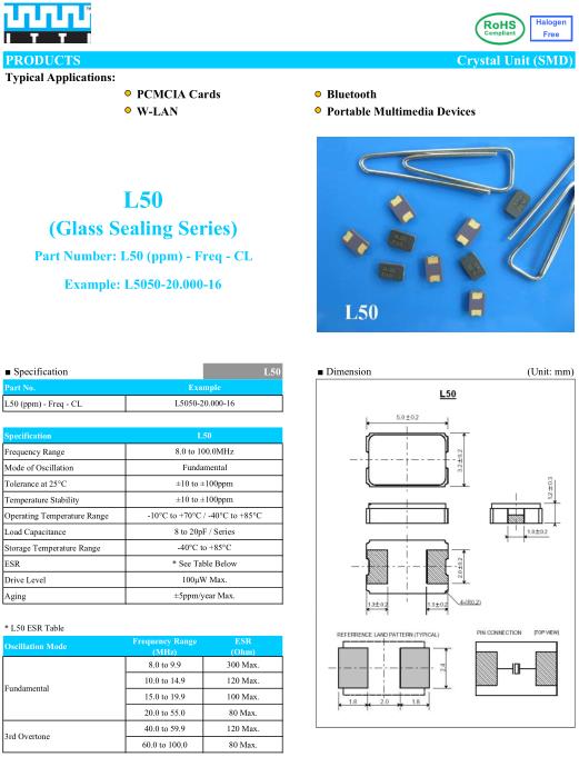 ITTI晶振,L50晶振,L5050-20.000-16晶振