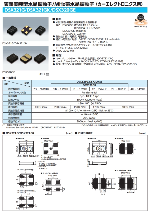 ●支持廣泛頻率DSX321G/DSX320GE: 7.9~64mhz
