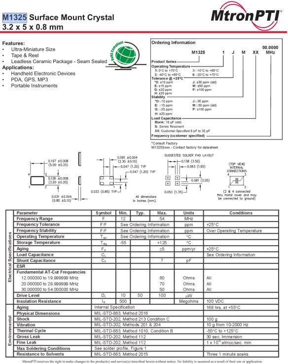 MtronPTI晶振,M1325晶振,M13251JMXX16.000000MHz晶振