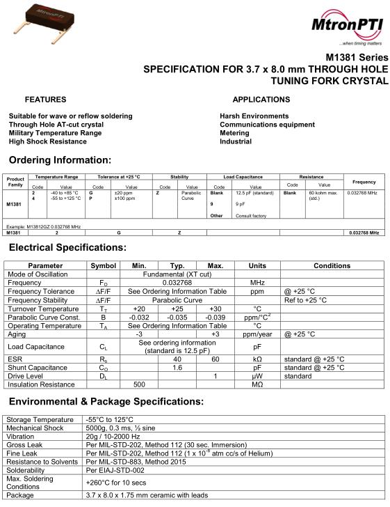 MtronPTI晶振,M1381晶振,M13812GZ0.032768MHz晶振