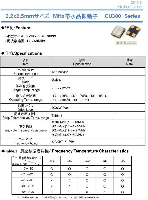 NAKA晶振,CU300晶振,12MHZ晶振,3225mm體積貼片晶振適用于汽車電子領域的表面貼片型石英晶振,本產品已被確定的高信賴性最適合用于汽車電子部件,晶體在極端嚴酷的環(huán)境條件下也能發(fā)揮穩(wěn)定的起振特性,晶振本身具有耐熱,耐振,耐沖擊等優(yōu)良的耐環(huán)境特性,滿足無鉛焊接的高溫回流溫度曲線要求,符合AEC-Q200標準.作為一名優(yōu)秀的企業(yè)公民,Naka&Co.,Ltd。的目標是成為“對地球友好的公司”,致力于環(huán)境保護并繼續(xù)開展以下活動。