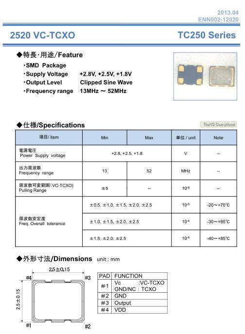 NAKA晶振,TC250晶振,VC-TCXO壓控溫補晶振