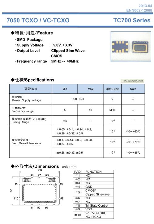 - 產(chǎn)品描述:NAKA晶振,TC700晶振,溫補晶振,溫補晶振(TCXO)產(chǎn)品本身具有溫度補償作用,高低溫度穩(wěn)定性:頻率精度高0.5PPM-2.0PPM,工作溫度范圍:-30度至85度,電源電壓:1.8V-3.3V之間可供選擇,產(chǎn)品本身具有溫度電壓控制功能,世界上最薄...