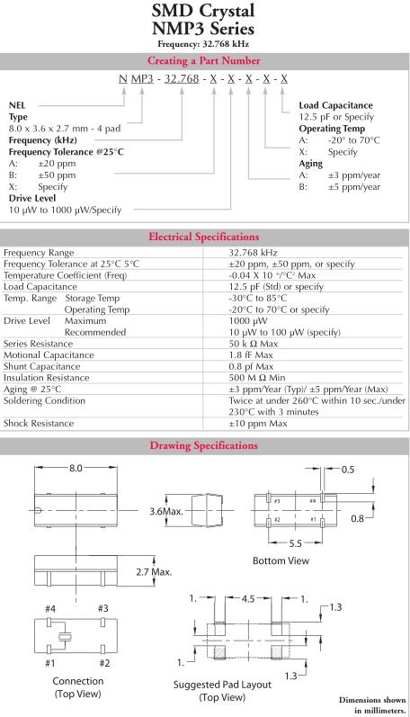 NEL晶振,NMP3晶振,NMP3-32.768-A-10μW-AA-12.5pF晶振