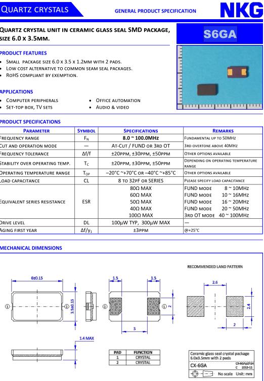 NJR晶振,S6GA晶振,S6GA-24.0000F-18E2-EXT晶振,貼片晶振本身體積小,超薄型石英晶體振蕩器,特別適用于有目前高速發展的高端電子數碼產品,因為晶振本身小型化需求的市場領域,小型,薄型是對應陶瓷振蕩器(偏差大)和普通的石英晶體振蕩器(偏差小)的中間領域的一種性價比較出色的產品.產品廣泛用于筆記本電腦,無線電話,衛星導航SSD,USB,Blu-ray等用途,符合無鉛焊接的高溫回流焊曲線特性.