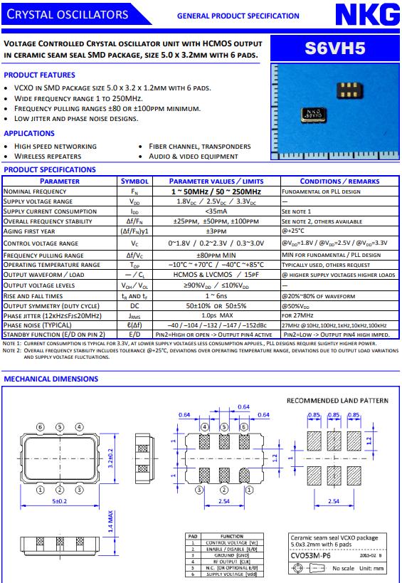 NJR晶振,S6VH5晶振,S6VH533B-16.000MT50A-EXT晶振,5032mm體積的石英晶體振蕩器,有源晶振,該產品可驅動2.5V的溫補晶振,壓控晶振,VC-TCXO晶體振蕩器產品,電源電壓的低電耗型,編帶包裝方式,可對應自動高速貼片機自動焊接,及IR回流焊接(無鉛對應),為無鉛產品,超小型,質地輕.產品被廣泛應用到集成電路,程控交換系統,無線發射基站.