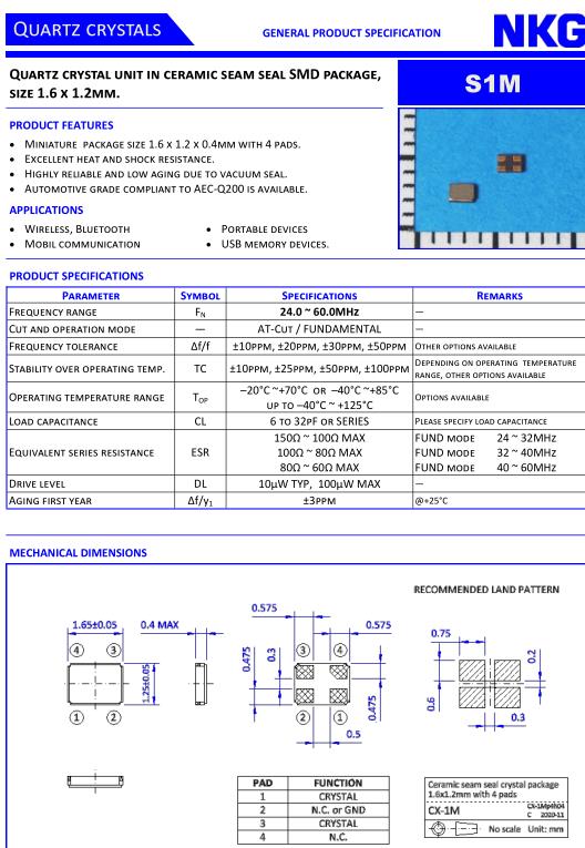 NKG晶振,S1M晶振,S1M24.0000-F18E2-EXT晶振