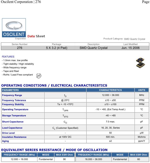 Oscilent晶振,276晶振,276-12.0M-SR-05-G-R-TR晶振