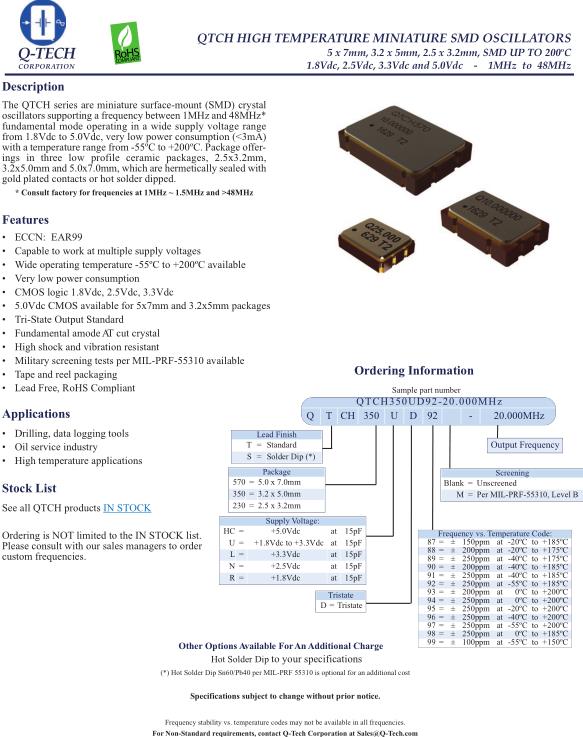 Q-Tech晶振,QTCH570晶振,QTCH570UD92-20.000MHz晶振