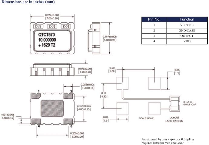 Q-Tech晶振,QTCT570晶振,QTCT5703C1T-24.000000晶振,小型SMD有源晶振,從最初超大體積到現在的7050mm,6035mm,5032mm,3225mm,2520mm體積,有著翻天覆地的改變,體積的變小也使產品帶來了更高的穩定性能,接縫密封石英晶體振蕩器,精度高,覆蓋頻率范圍寬的特點,SMD高速自動安裝和高溫回流焊設計,Optionable待機輸出三態輸出功能,電源電壓范圍:1.8V~5V,高穩定性,低抖動,低功耗,主要應用領域:無線通訊,高端智能手機,平板筆記本WLAN,藍牙,數碼相機,DSL和其他IT產品的晶振應用,三態功能,PC和LCDM等高端數碼領域,符合RoHS/無鉛.