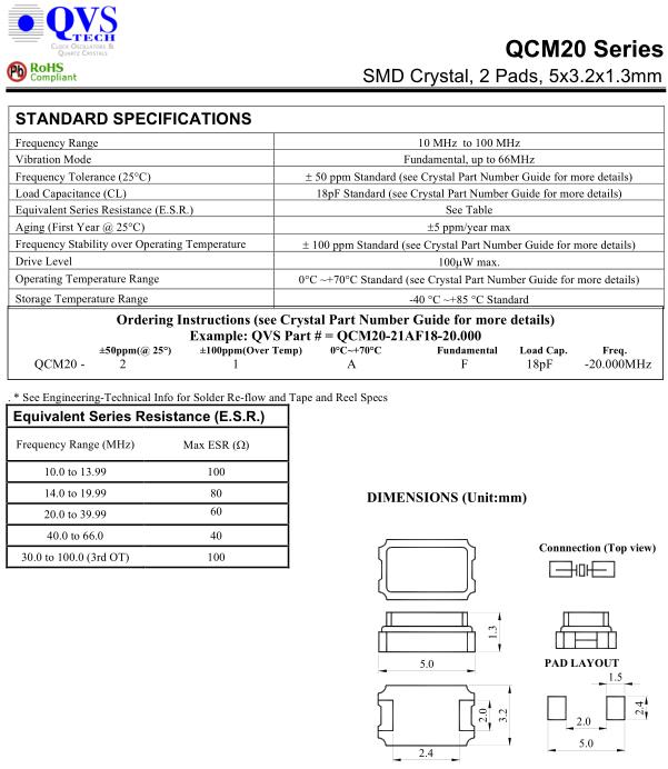 QVS晶振,QCM20晶振,QCM20-21AF18-20.000晶振