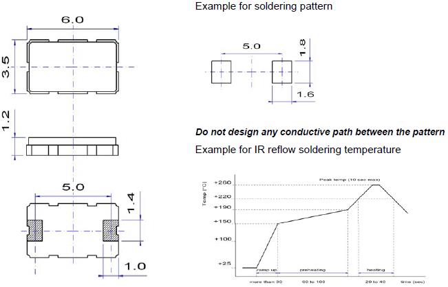 將晶振加熱包裝材料至+150°C以上會破壞產品特性或損害產品.如需在+150°C以上焊接石英晶振,建議使用SMD晶振產品.在下列回流條件下,對石英晶振產品甚至SMD貼片晶振使用更高溫度,會破壞晶振特性.建議使用下列配置情況的回流條件.安裝這些貼片晶振之前,應檢查焊接溫度和時間.同時,在安裝條件更改的情況下,請再次進行檢查.如果需要焊接的晶振產品在下列配置條件下進行焊接,請聯系我們以獲取耐熱的相關信息.