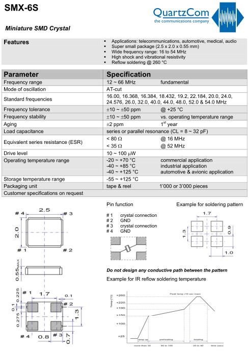 | QuartzCom晶振規(guī)格 | 單位 | SMX-6S晶振頻率范圍 | 石英晶振基本條件 |