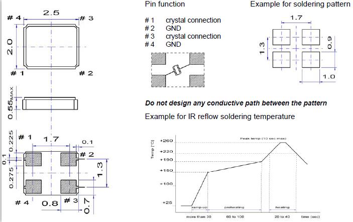 重復(fù)的溫度巨大變化可能會降低受損害的石英晶振產(chǎn)品特性,并導致塑料封裝里的線路擊穿.必須避免這種情況.